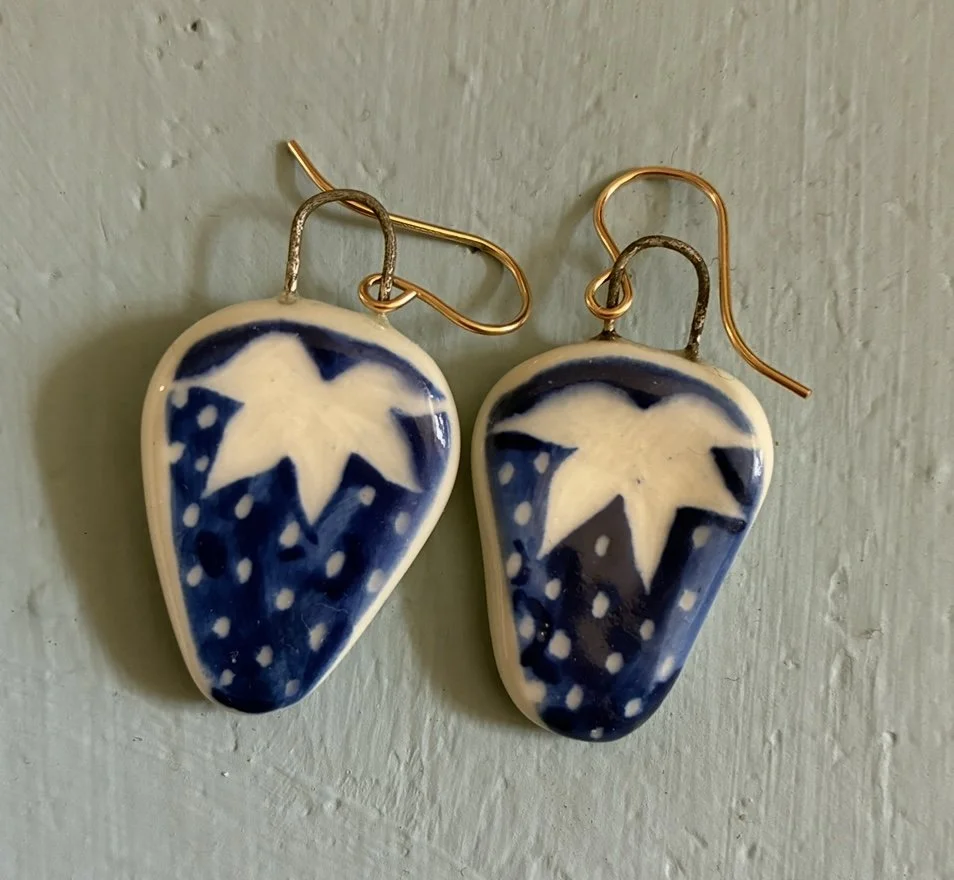 Necklaces › Blue and White Strawberry Earrings Image 1 of 1 Blue and White Strawberry Earrings £85.00 Handmade and painted ceramic charm earrings. Porcelain with gold filled hooks. Quantity: Add To Cart Added! Handmade and painted ceramic charm earrings. Porcelain with gold filled hooks.